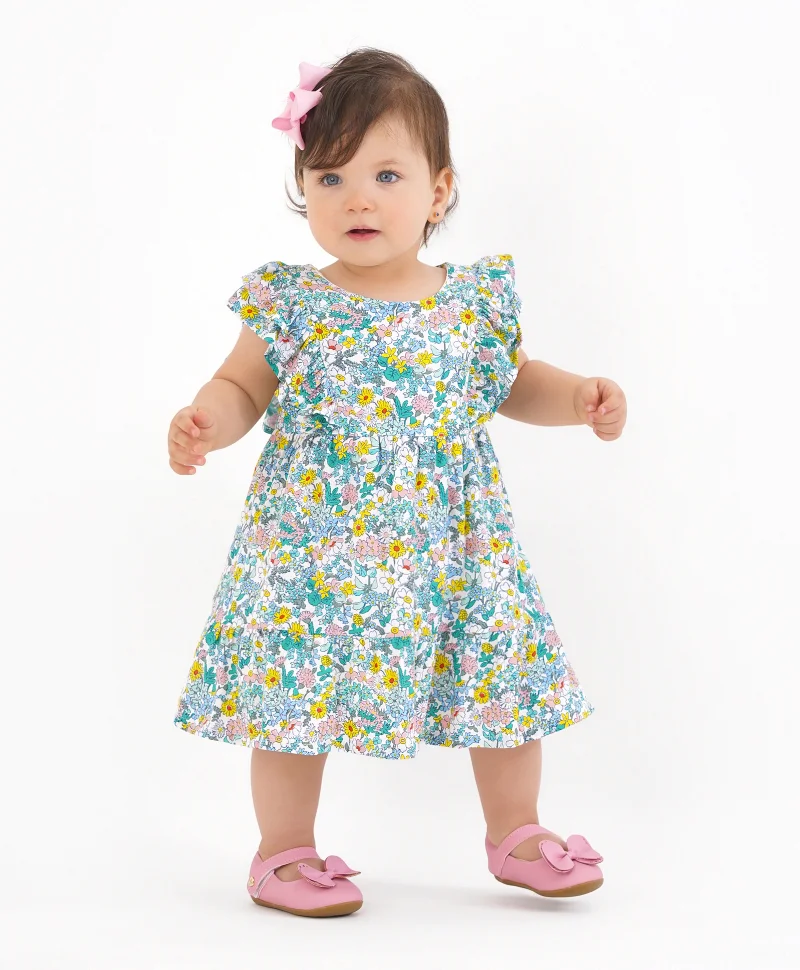 Bonfino 100% Cotton Interlock Half Sleeves Floral Print Frock - OffWhite