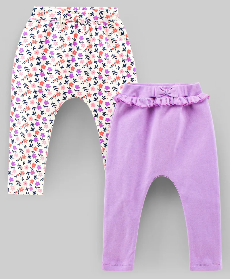 Bonfino - Full Length Leggings Bow Appliques - Pack of 2 - Purple White