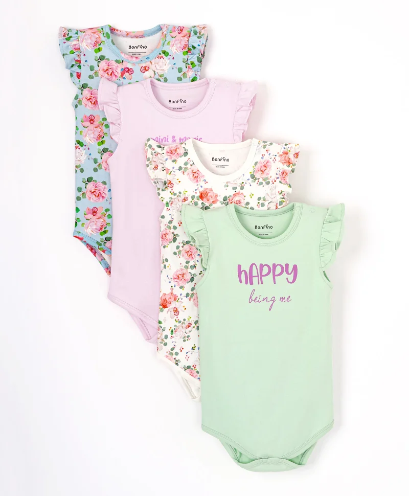 Bonfino 4 Pack All Over Printed Floral Bodysuit - Multicolor