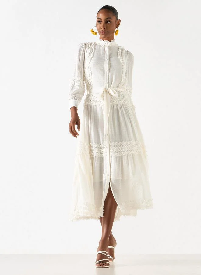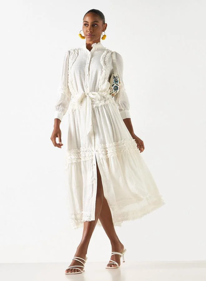 2Xtremz Ruffle Detail Dress with 3/4 Sleeves and Tie-Up Belt