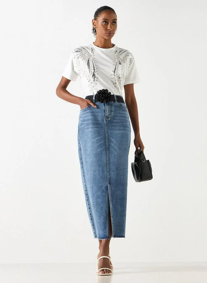 2Xtremz Denim Skirt with Pockets and Slit Detail
