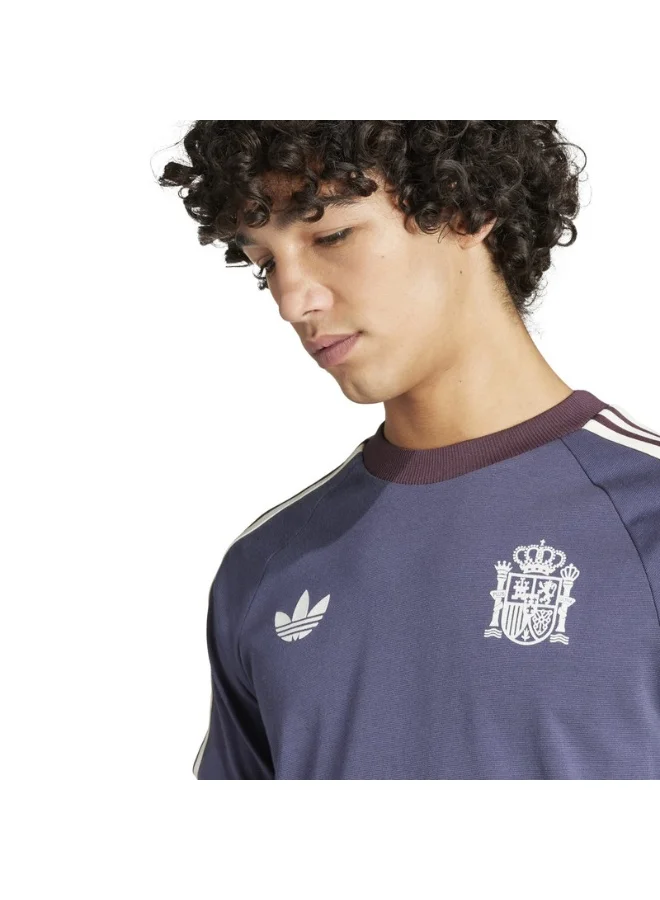 Elevate your sporty style with the Spain Adicolor Classics 3-Stripes Tee. Whether you're cheering from the sidelines or relaxing at home, this tee proudly displays your team's colors in sleek style. With a slim fit and ribbed crewneck, the tee is designed for optimal comfort. The iconic 3-Stripes on the sleeves and Spain suede print crest showcase timeless heritage and team allegiance, while the bold print at the back helps you stand out. From casual outings to game day ensembles, this tee effortlessly combines athletic aesthetics with modern design details to show off your support.