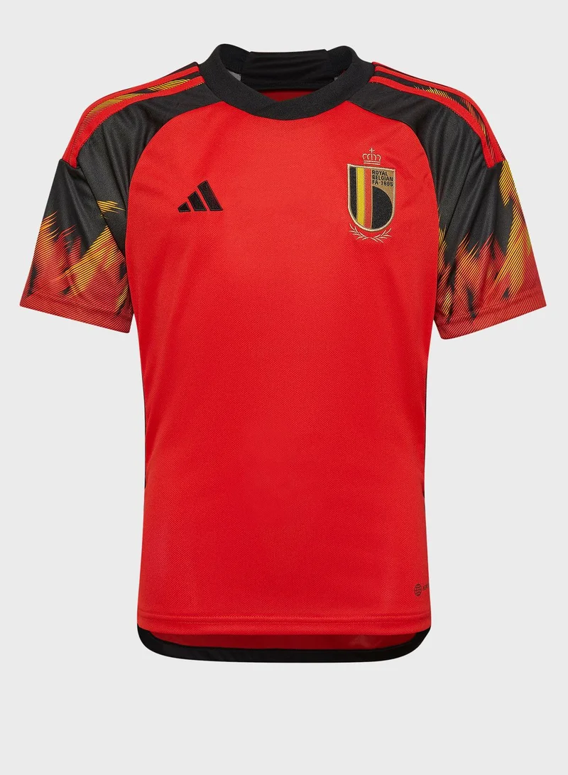 This juniors' Belgium home jersey takes design inspiration from the team's famous Red Devils nickname.