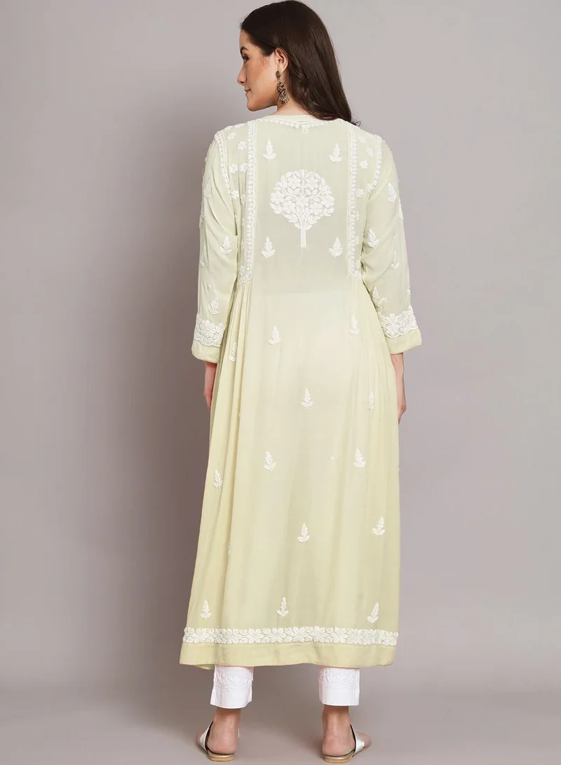 The design of the kurta is typically long and loose, reaching up to the Ankles Length . It has a line or slightly flared silhouette, providing comfort and ease of movement. The neckline can vary, ranging from a simple round neck to a more elaborate. The sleeves can be long, Full Length, depending on the style and personal preference. The embroidery not only enhances the aesthetic appeal of the kurta but also adds a touch of traditional craftsmanship and cultural heritage