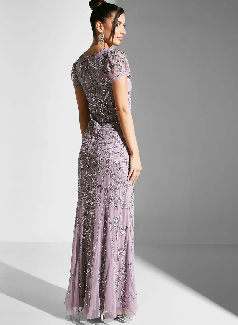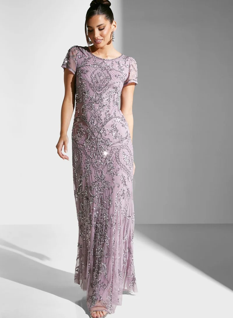 Amelia Rose Embellished Mesh Detail Dress