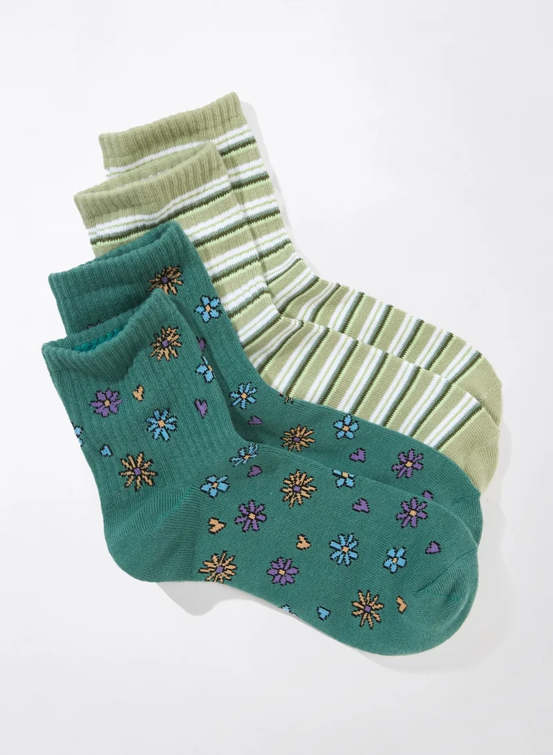 American Eagle AE Daisy Striped Boyfriend Sock 2-Pack