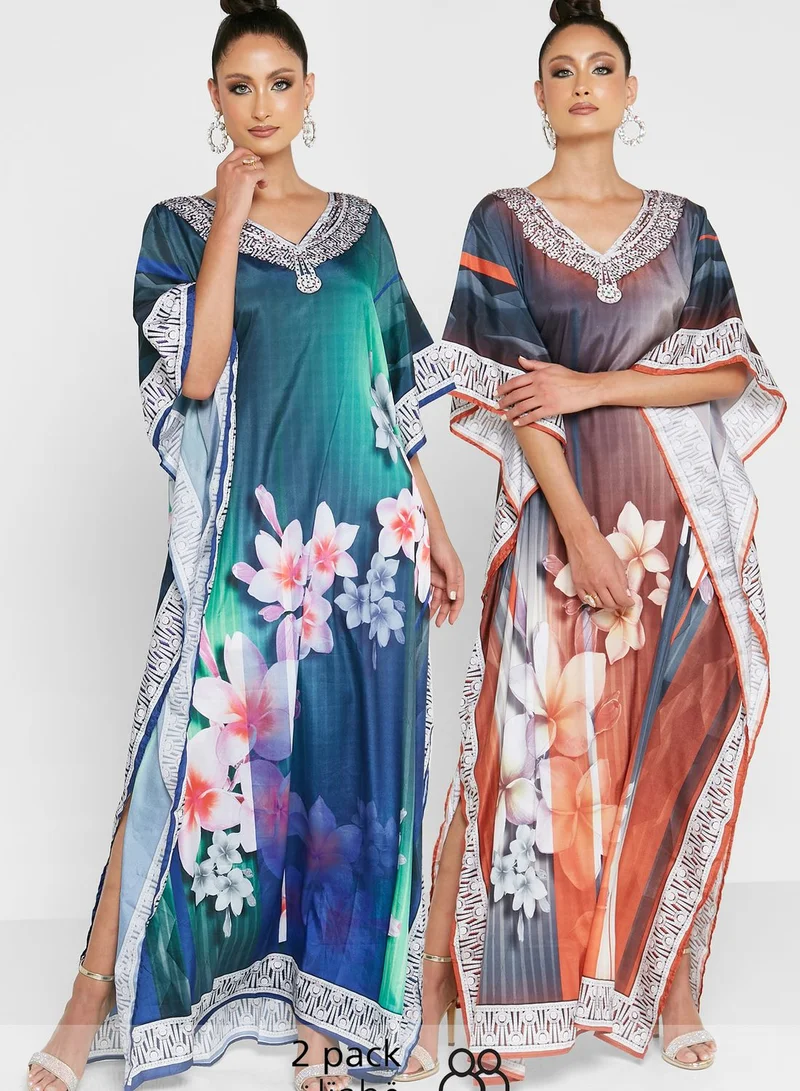 ARABIAN CLOSET 2 Pack Kimono Sleeve Printed Kaftan