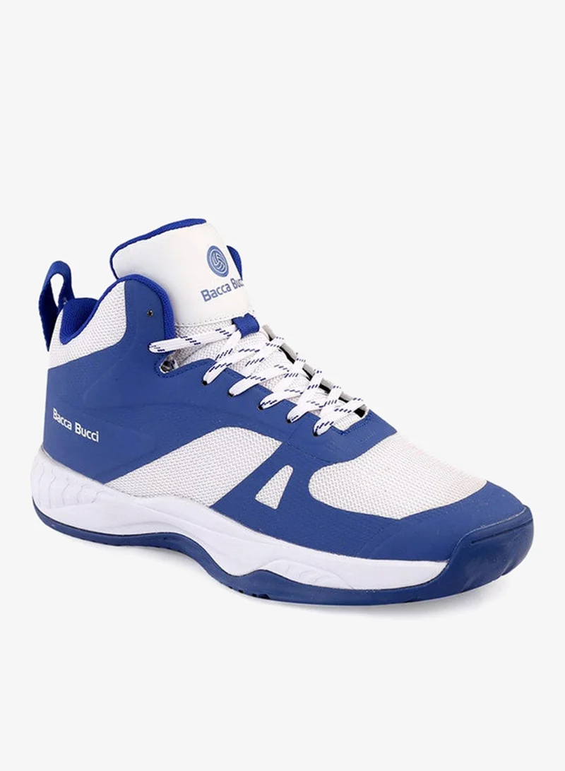 These Bacca Bucci mid-top basketball shoes are designed for performance and style. Featuring a striking blue and white color scheme, the shoes are crafted with a breathable mesh upper that ensures comfort during play. The cushioned footbed provides support, while the textured rubber outsole offers excellent grip on the court. With lace-up fastening, these shoes ensure a secure fit, making them ideal for basketball enthusiasts. The upgraded wave-shaped rubber outsole enhances durability, providing crack and wear resistance for long-lasting use.