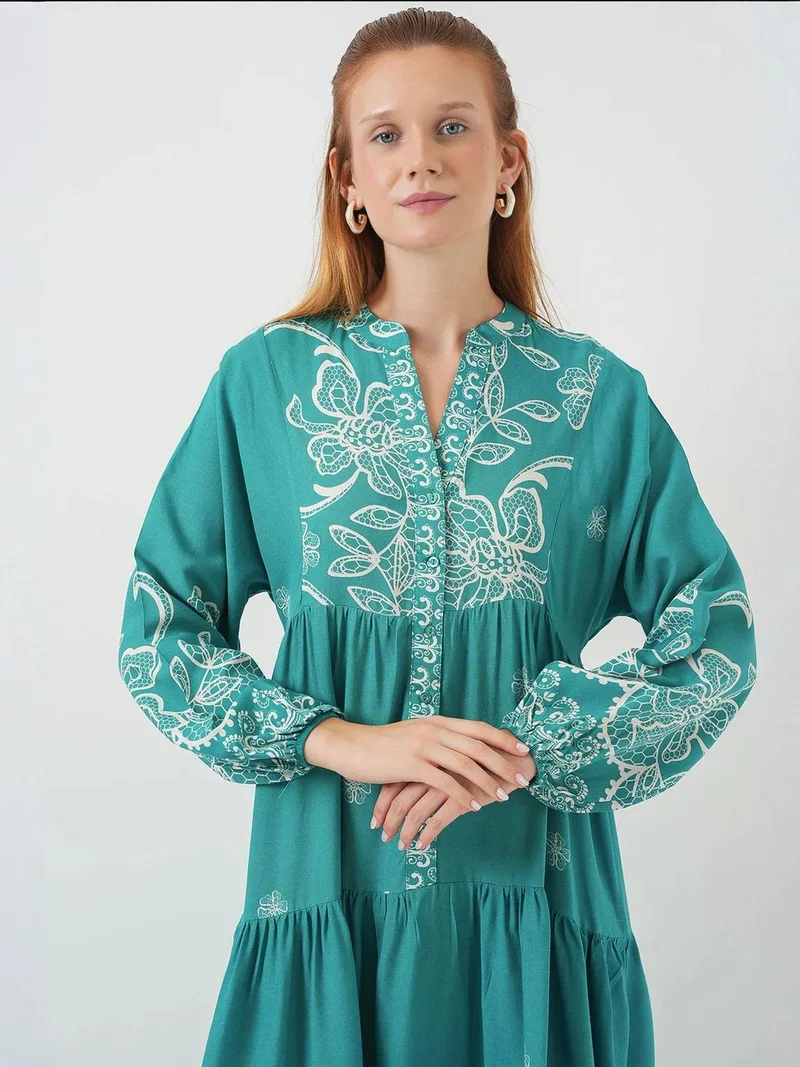 BIG DART BDART Printed V-Neck Maxi Dress with Button Closure