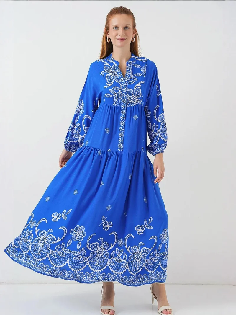 BIG DART BDART Printed V-Neck Maxi Dress with Button Closure