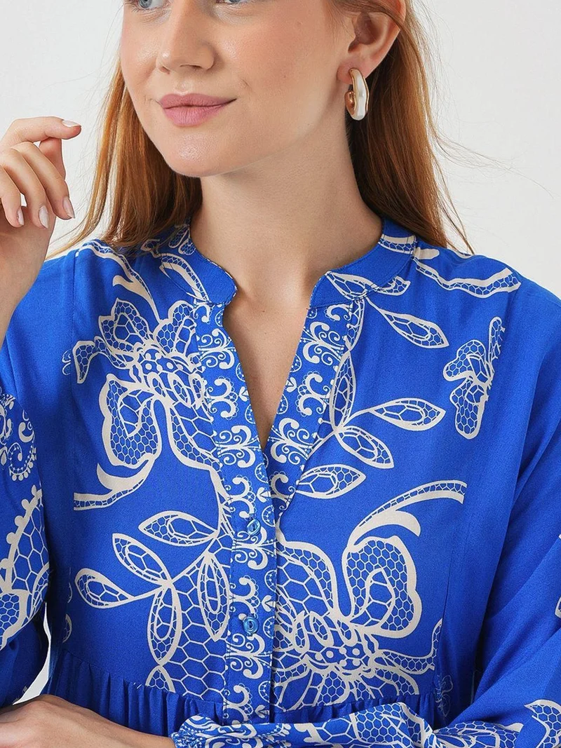 BDART Printed V-Neck Maxi Dress with Button Closure