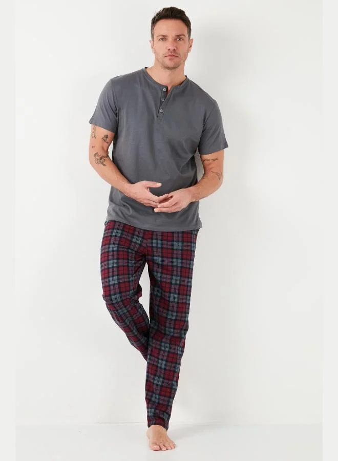 Buratti Plaid Cotton Elastic Waist Regular Fit Short Sleeve Pajama Set Men's PAJAMAS SET 6572004