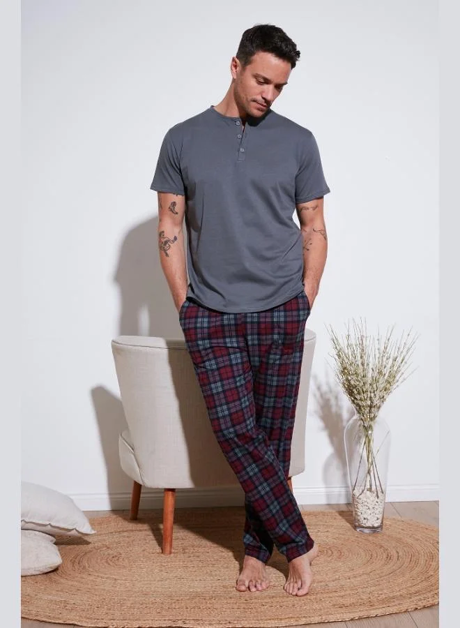 Buratti Buratti Plaid Cotton Elastic Waist Regular Fit Short Sleeve Pajama Set Men's PAJAMAS SET 6572004