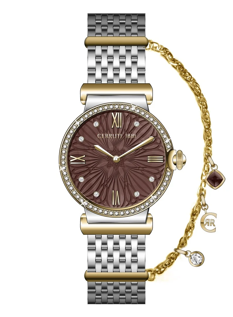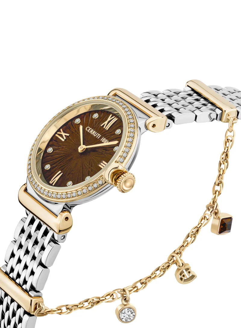 A combination of fashion and elegance. Delightfully feminine, the Corniglia watch comes with an additional chain bracelet to add a unique jewelery accent to the design.