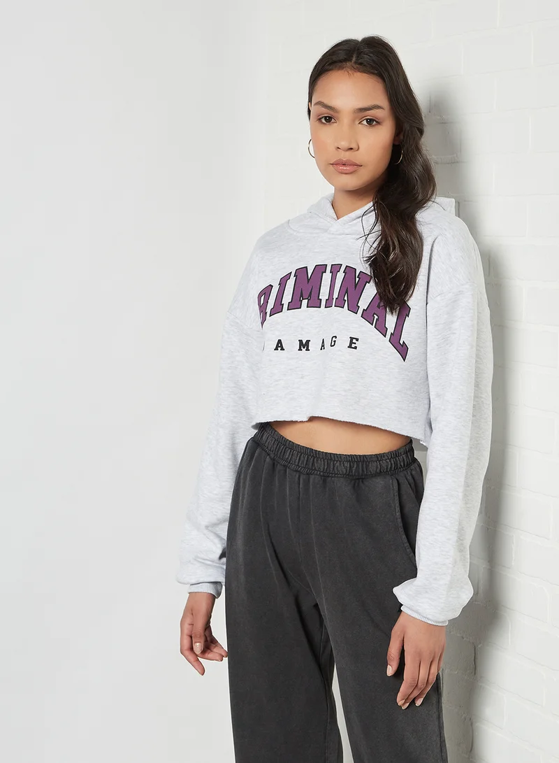 CRIMINAL DAMAGE Crop Spellout Hoodie Grey Marl