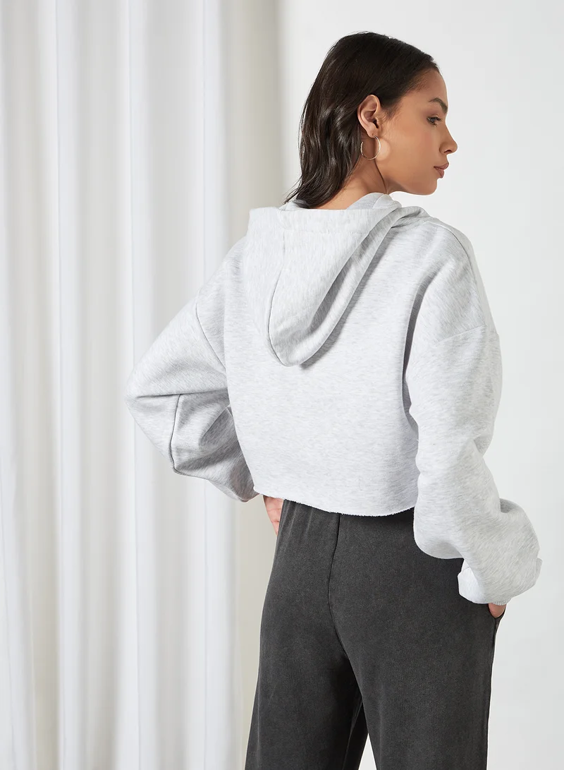 Crop Spellout Hoodie Grey Marl