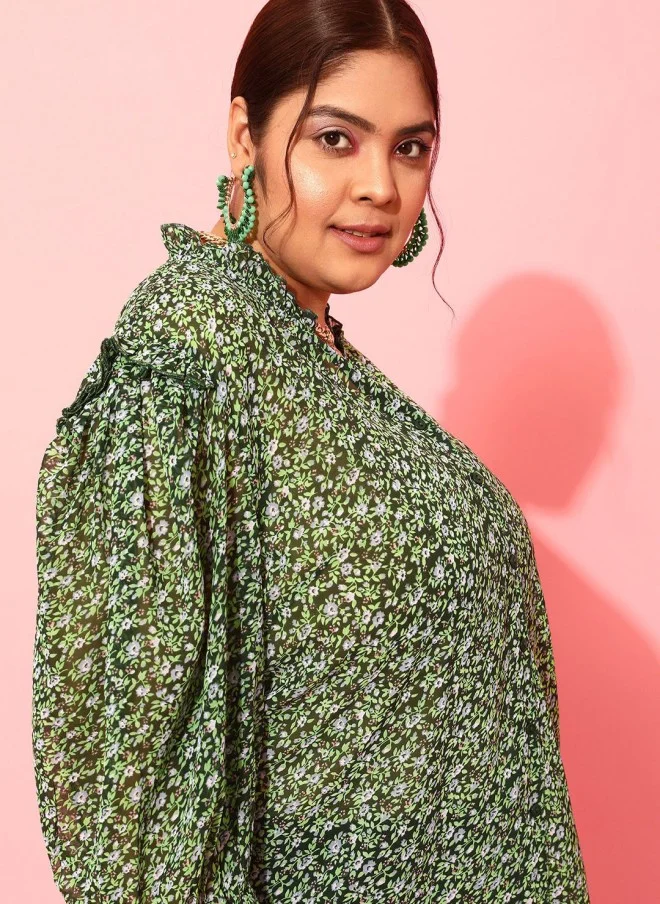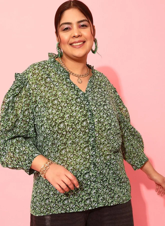 This stylish floral printed casual shirt is designed for comfort and elegance. Made from high-quality polyester, it features a mandarin collar and a button placket for a classic look. The shirt has three-quarter puff sleeves that add a touch of femininity, while the curved hemline provides a flattering fit. The opaque fabric ensures modesty, making it perfect for casual outings. With its vibrant green and grey floral pattern, this shirt is a versatile addition to any wardrobe, suitable for various occasions.