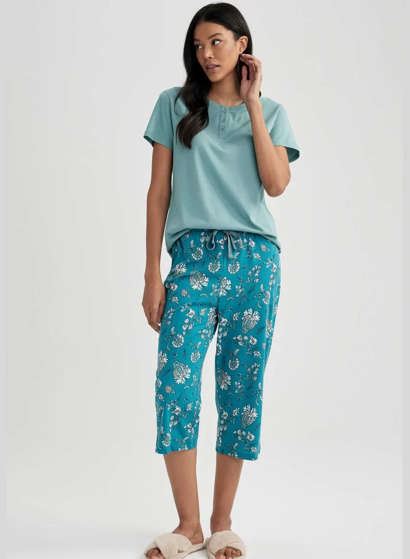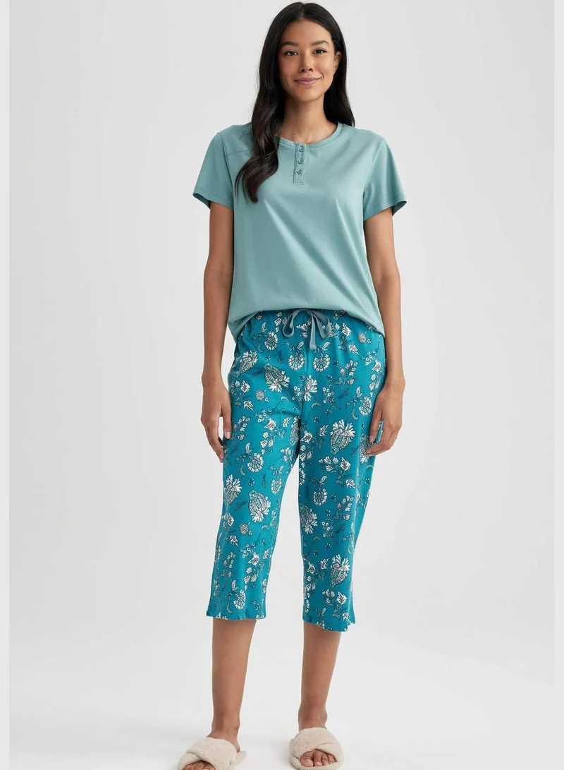 DeFacto 2 Pack Woman Crew Neck Short Sleeve Homewear Knitted Set