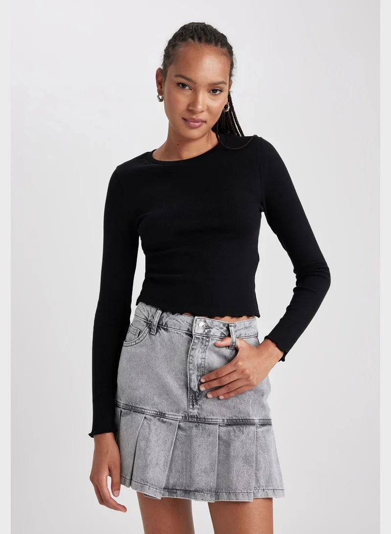 DeFacto Fitted Crew Neck Long Sleeve T-Shirt