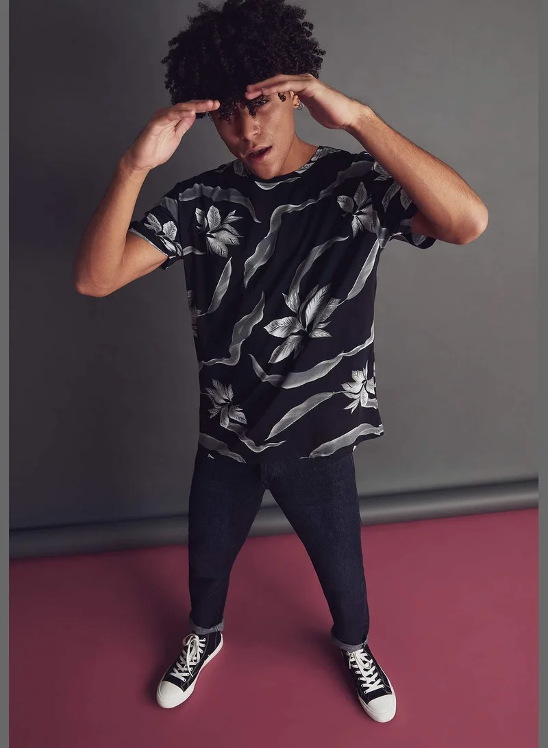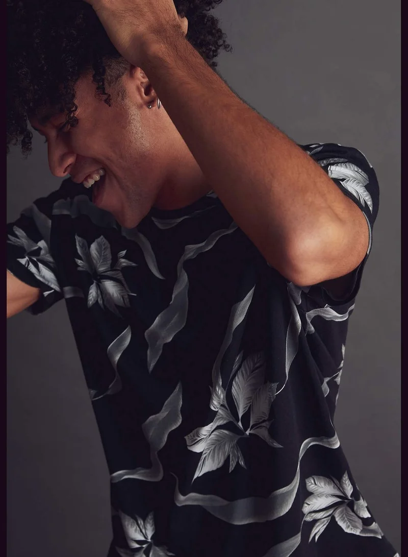 DeFacto Regular Fit Floral Printed Short Sleeve Crew Neck T-Shirt