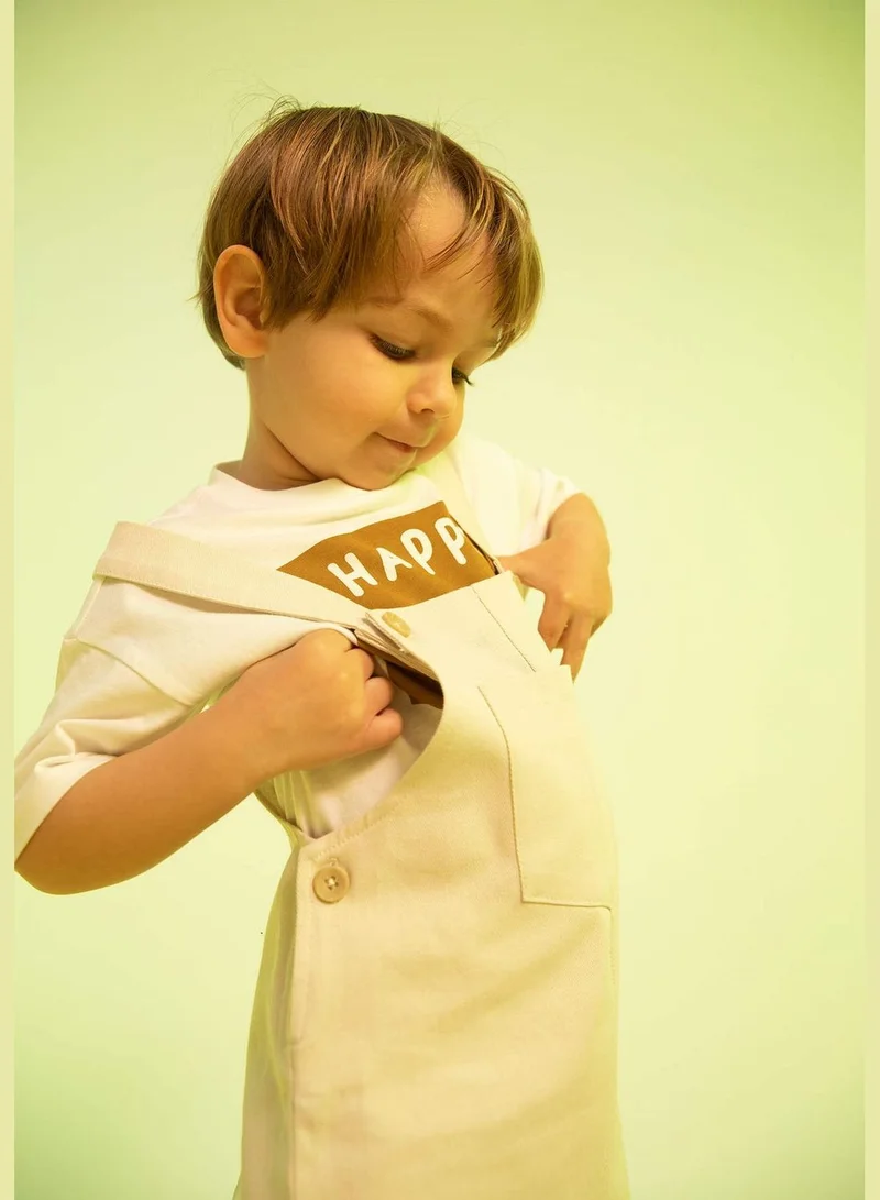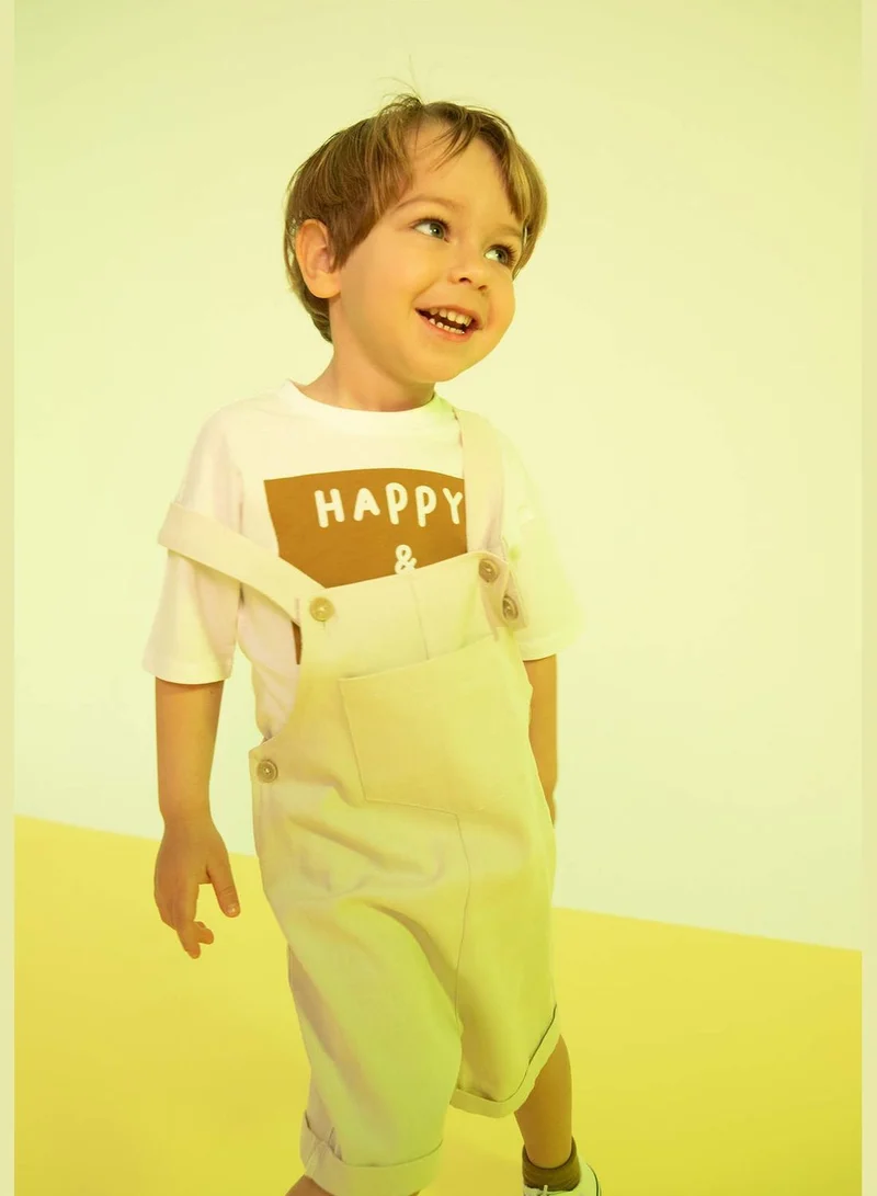 Regular Fit Short Sleeve T-Shirt & Dungarees Set beige