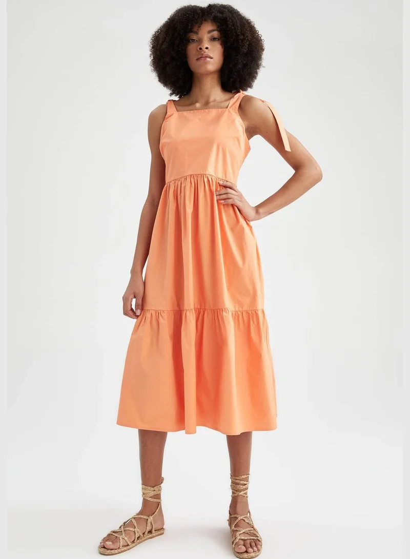 DeFacto Woman Square Neck Short Sleeve Woven Dress