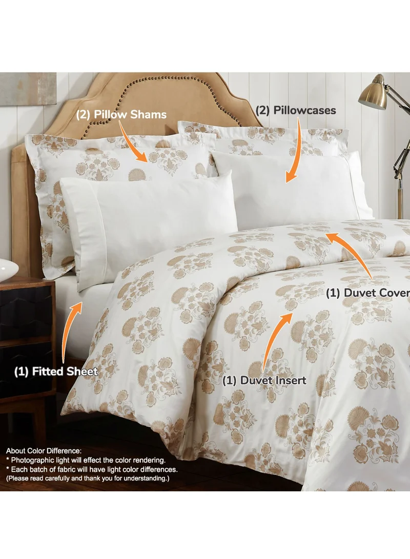 7-Piece Cotton Comforter Set With Removable Filler King 260 x 240 Cm Off-white/Beige