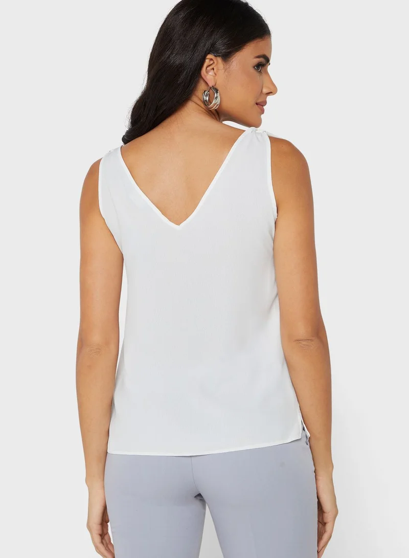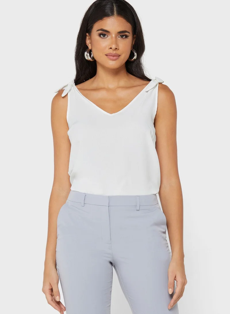 • V-neck with self tie-up shoulder straps