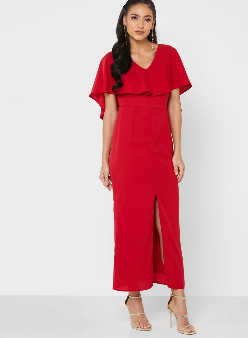 Ella Limited Edition Ruffle Cape Dress With Front Slit
