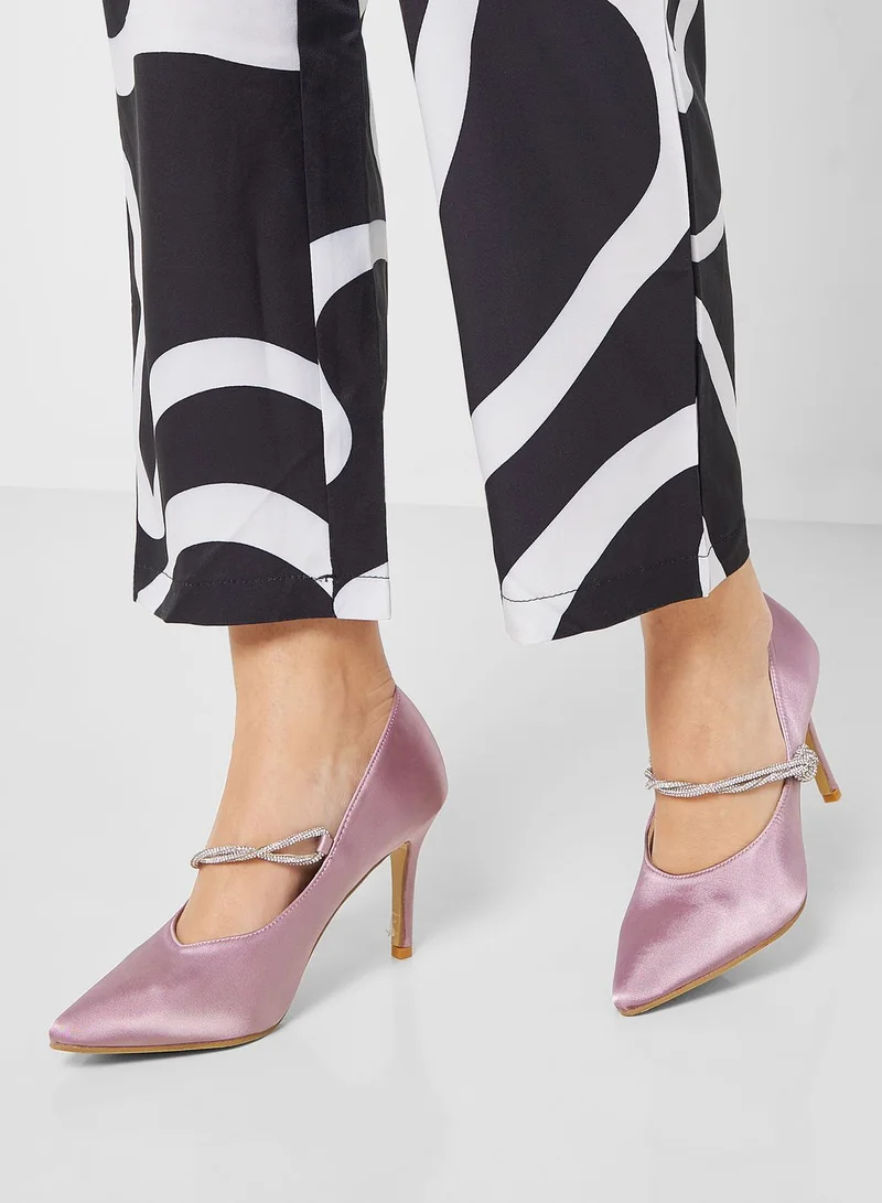 Satin Pump With Embelisshed Strap
