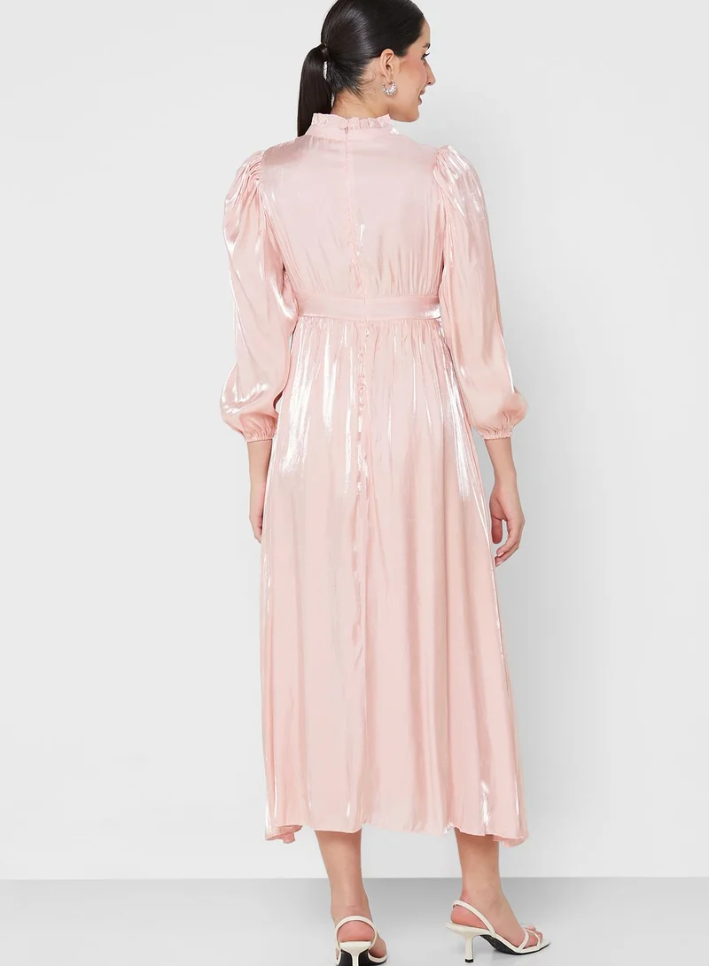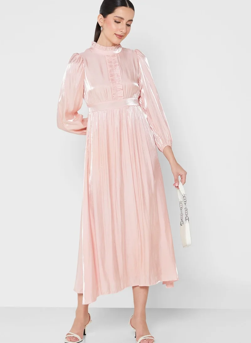 Ruffle Detail Satin Dress