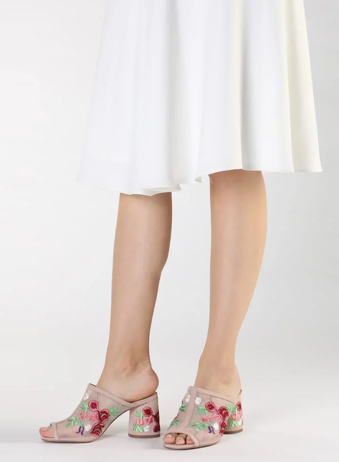 Women Embroidered Mid Heel Slides
