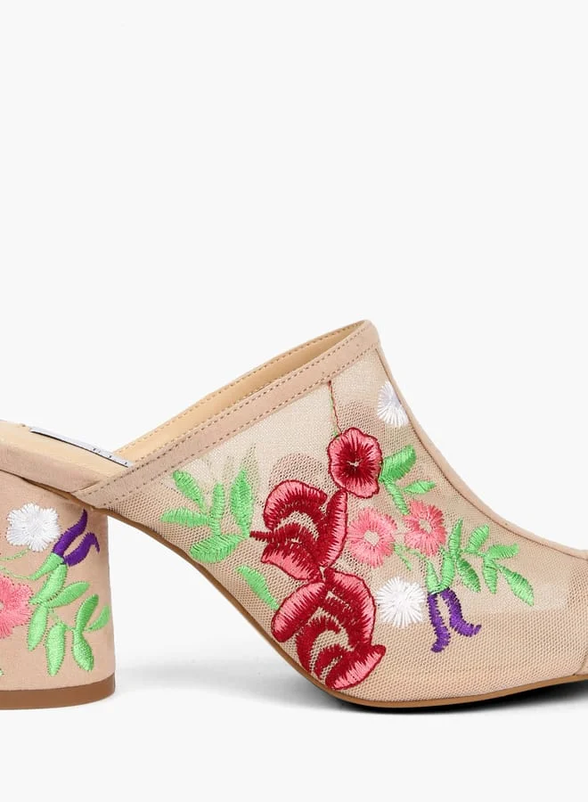 ELLE Women Embroidered Mid Heel Slides