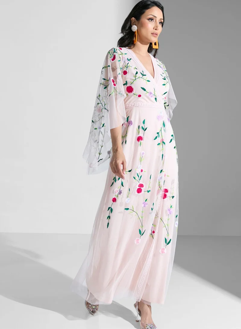 • Surplice neck and cape sleeves