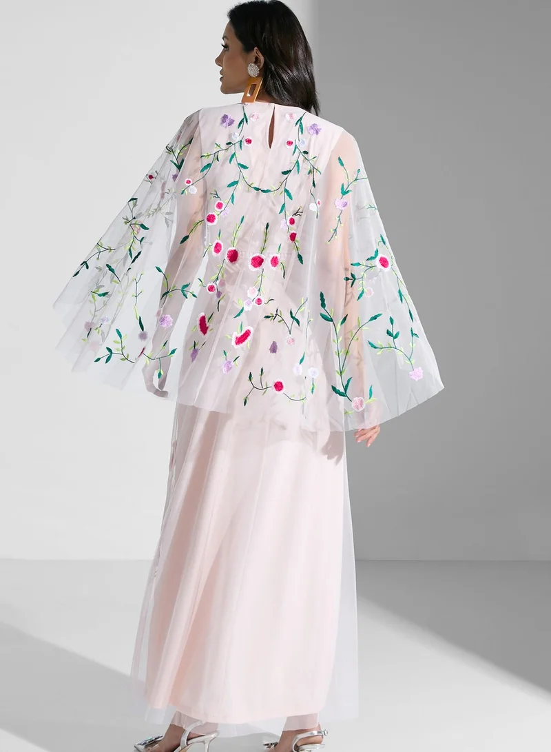 • Polyester tulle fabric with floral embroidery
