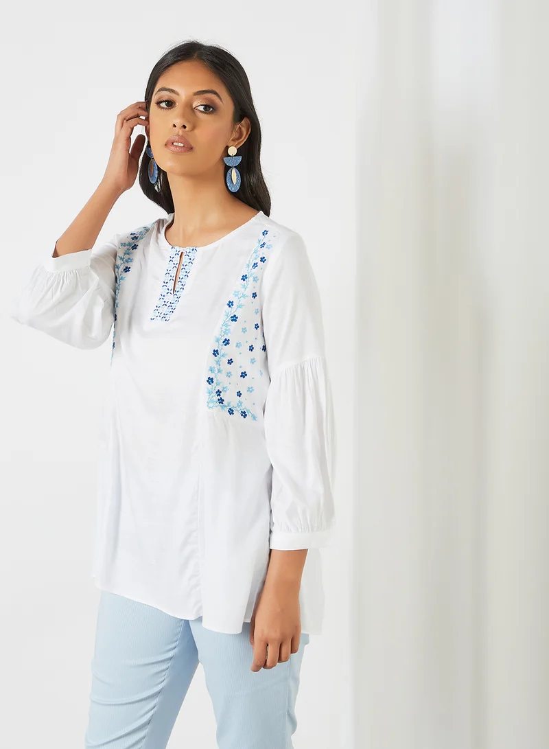 Floral Embroidered Tunic White