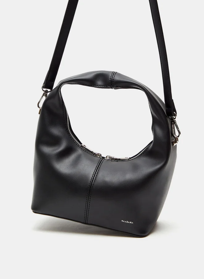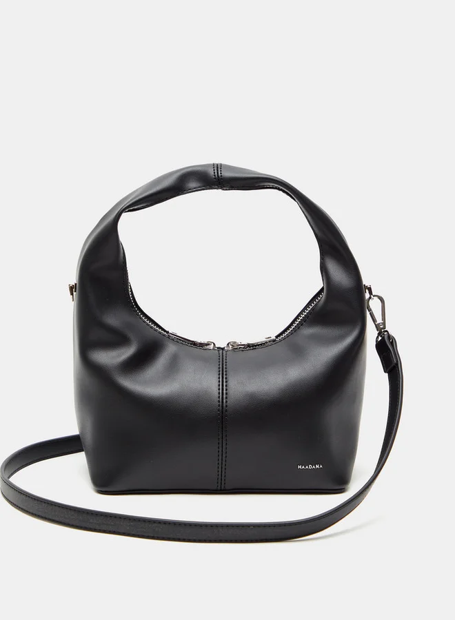 Presenting a solid colour, this hobo bag by Haadana is designed with a minimalist sense. The spacious interior can accommodate maximum items in one go, while the detachable and adjustable strap provides the versatility to carry. It comes with a top handle and zip closure. Furthermore, well-crafted from PU, this impressive accessory has good durability.