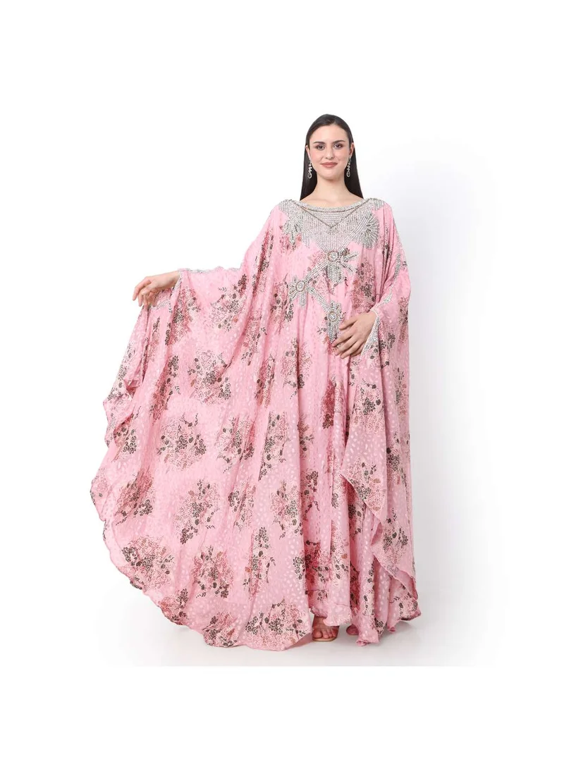 HEAVY FANCY EMBELLISHED STONE WORK WITH FLORAL PRINTED DESIGNER ARABIC KAFTAN JALABIYA DRESES