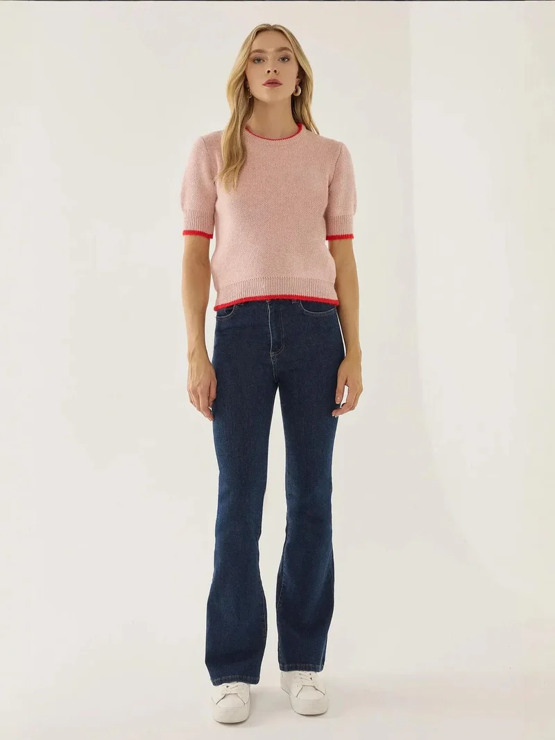 Introducing the Contrast Knitted Sweater, a cozy and stylish essential for your wardrobe. Crafted from high-quality acrylic, this sweater features a classic crew neck design and a comfortable short sleeve fit. Perfect for layering or wearing solo, it offers a regular fit that ensures effortless style. Whether you're dressing up for a casual outing or lounging at home, this knitted sweater is versatile enough to suit any occasion. Add this timeless piece to your collection and enjoy its comfort and charm all year round.