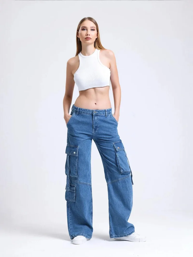 Introducing our Mid Rise Pocket Cargo Jeans in a sleek and stylish Charcoal Grey color. These jeans are the perfect blend of fashion and functionality. With their mid-rise fit, they offer a flattering silhouette that will enhance any outfit. The cargo pockets add a touch of utility, allowing you to carry your essentials with ease. Made from high-quality denim, these jeans are durable and built to last. Whether you're running errands or going out for a night on the town, these Mid Rise Pocket Cargo Jeans are the perfect choice. Upgrade your wardrobe today with this versatile and trendy piece.