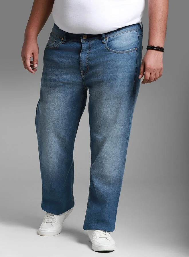 HIGH STAR Plus Size Mid Rise Light Fade Stretchable Jeans by Styli