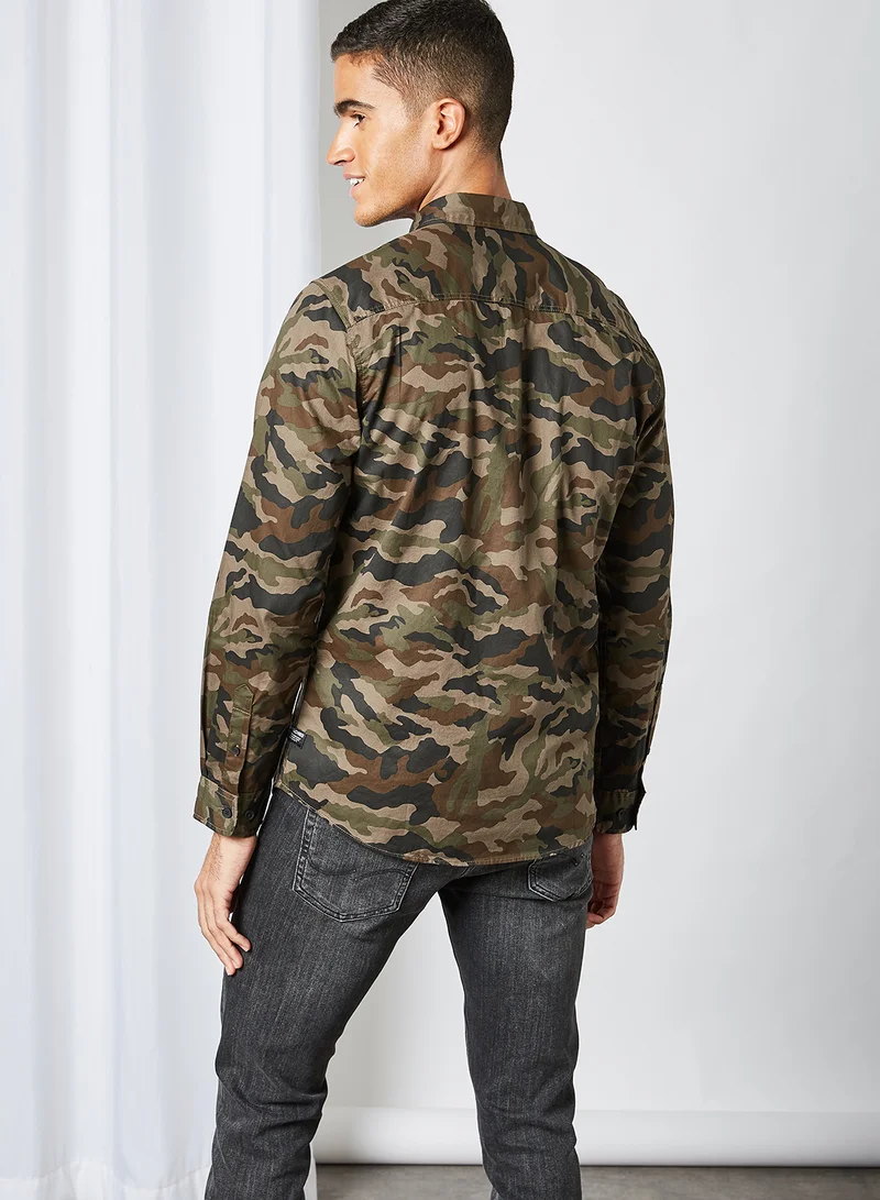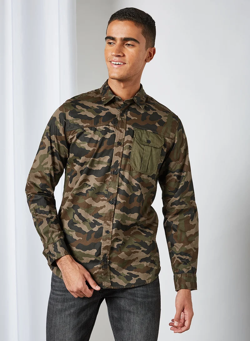 JACK & JONES Front Pocket Camo Shirt Forest Night / Slim