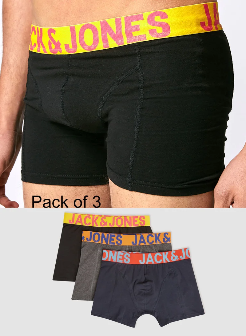 JACK & JONES Logo Waistband Trunks (Pack of 3)