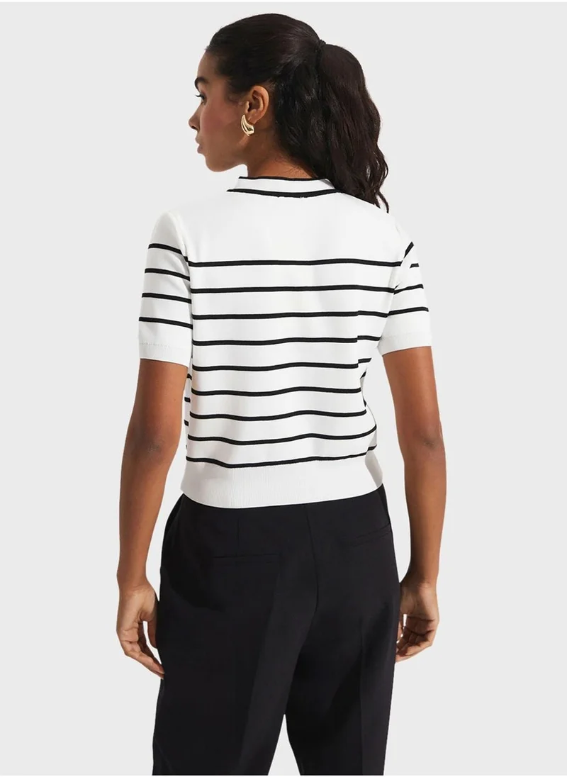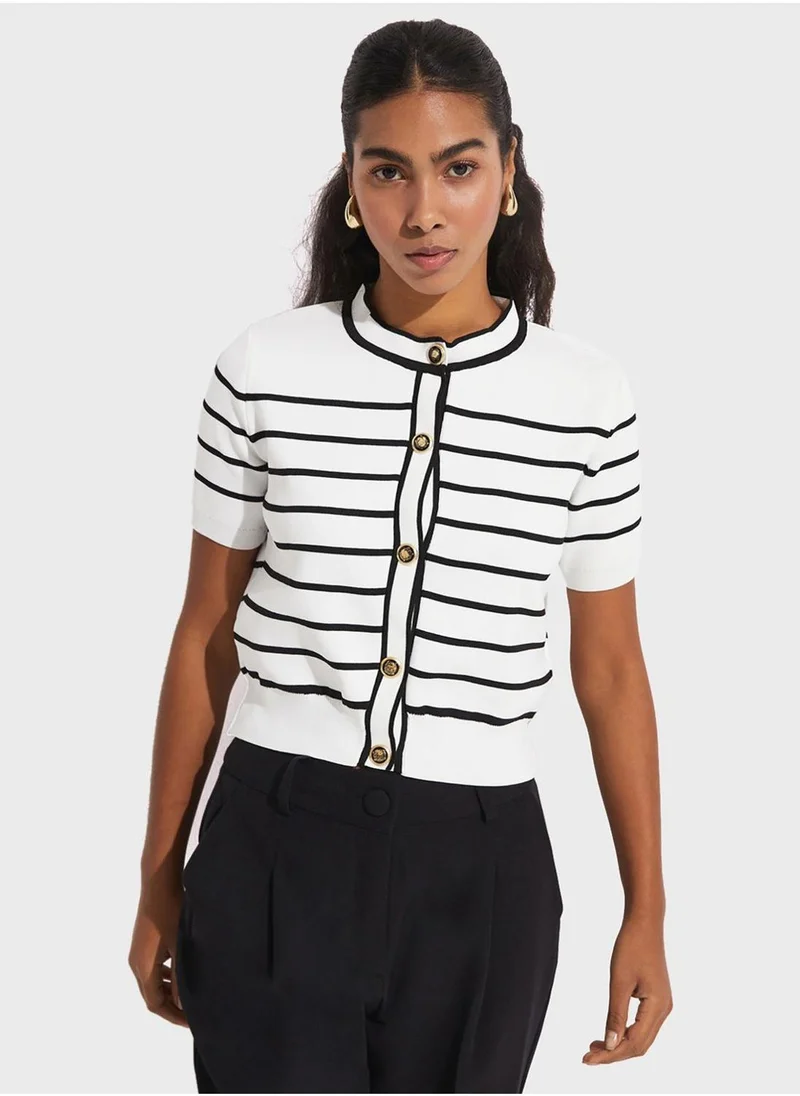 JUNE Round Neck Knitted Striped Cardigan
