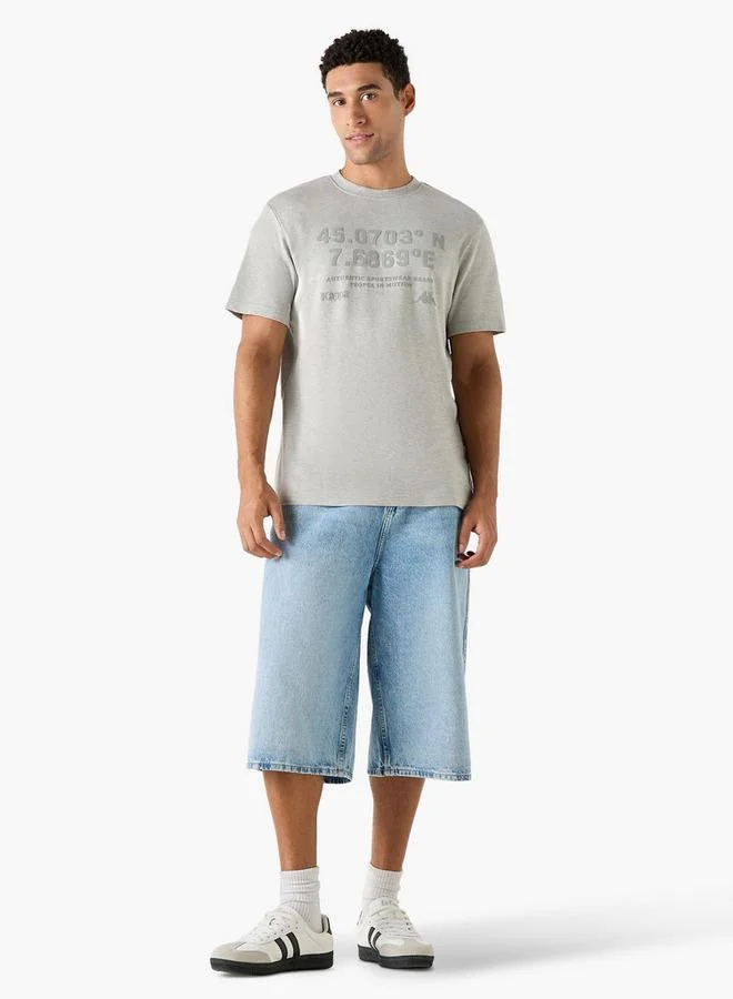 Kappa Embossed Crew Neck T-shirt with Short Sleeves
