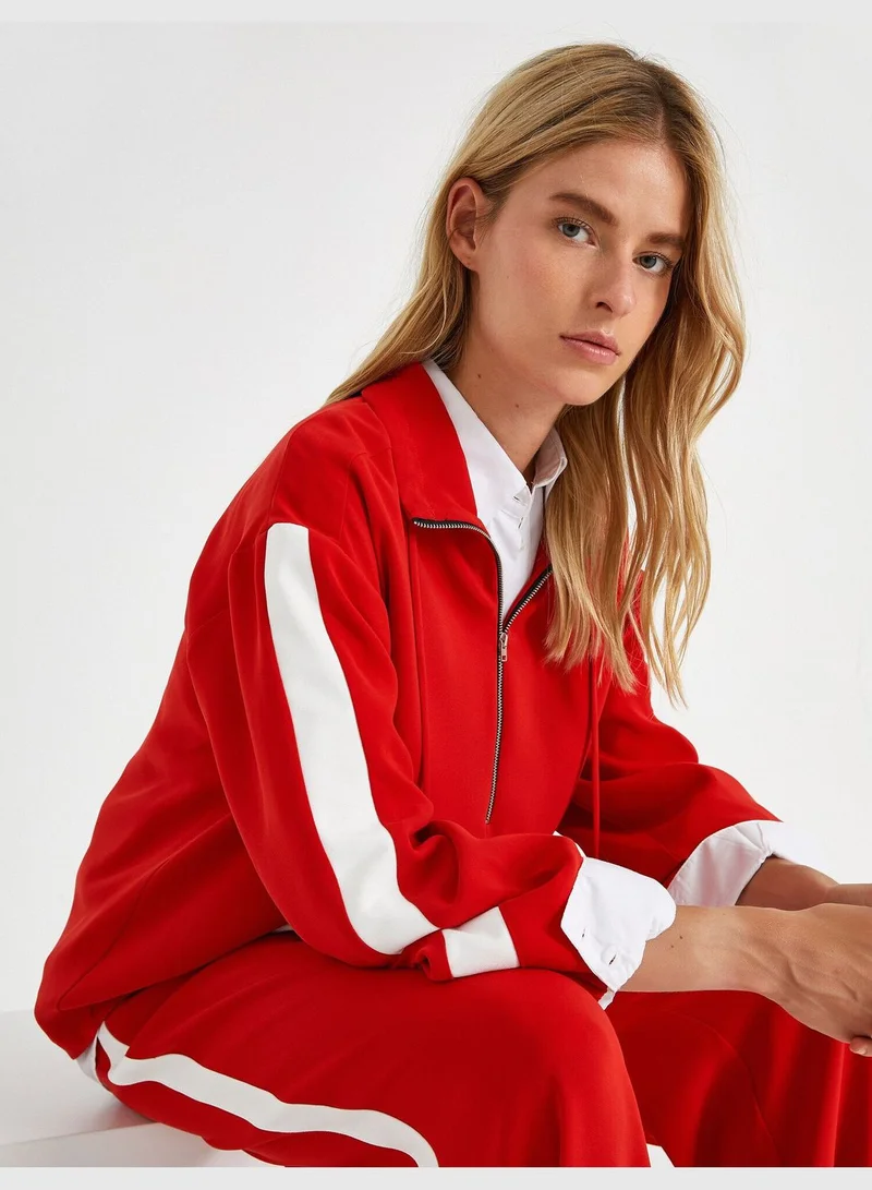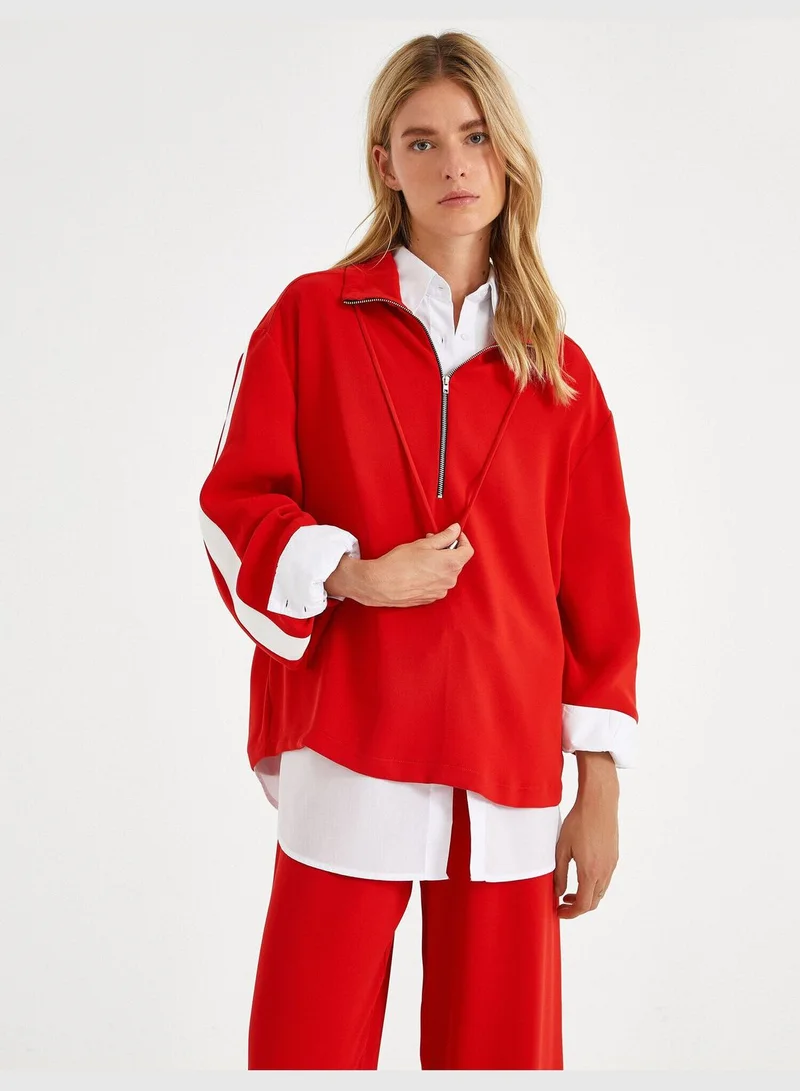 Kolları Şeritli Fermuar Yaka Uzun Kollu Bluz
