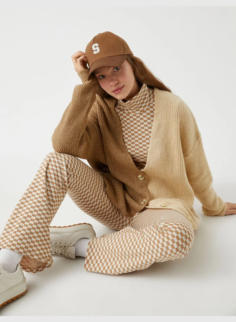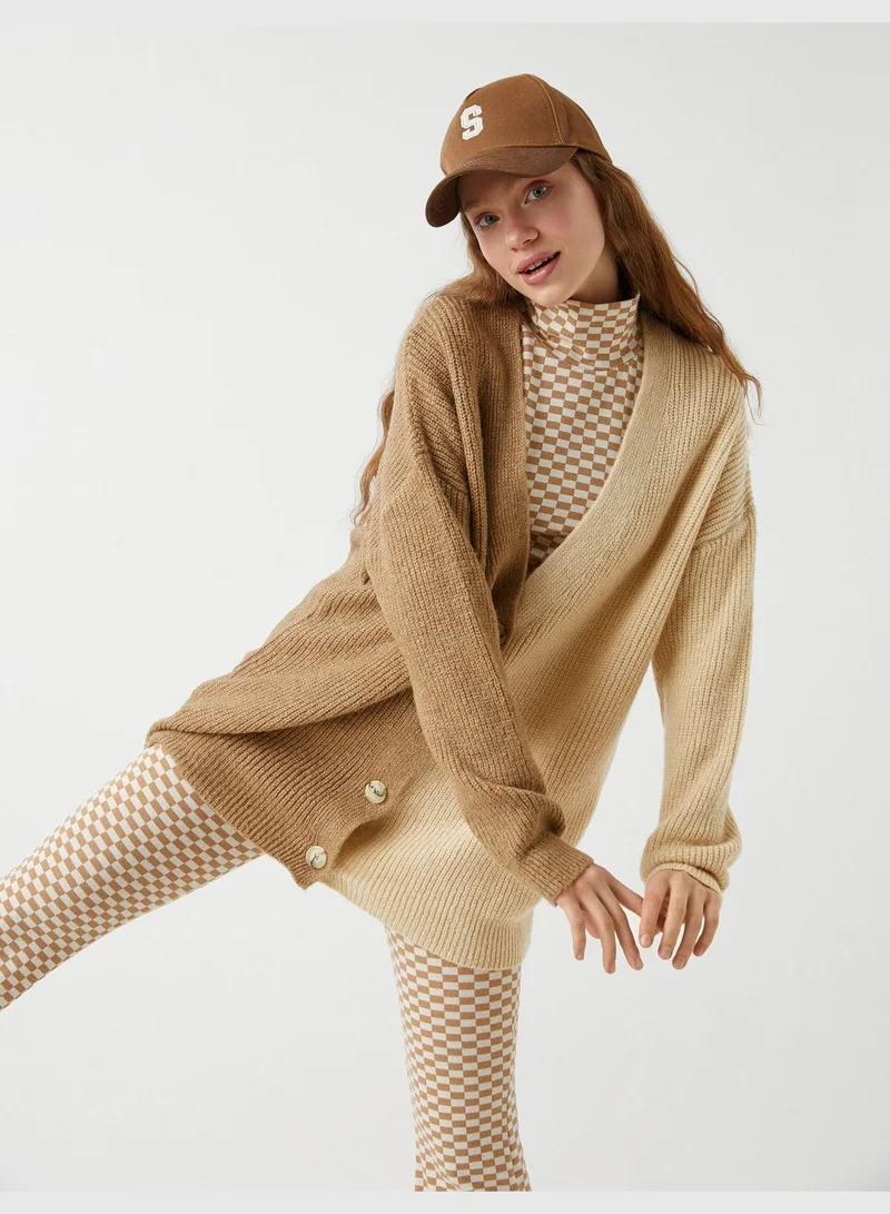 • Product MaterialColor Block, V Neck, Button Detail, Knitted Cardigan.