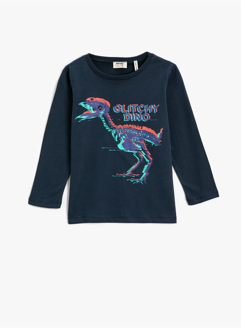 KOTON Dinosaur Printed Long Sleeve T-Shirt Crew Neck