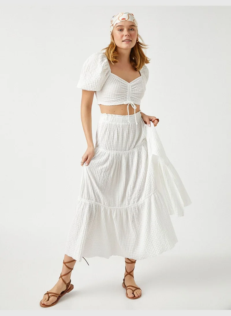 Beli Lastikli Yırtmaçlı Fırfırlı Etek