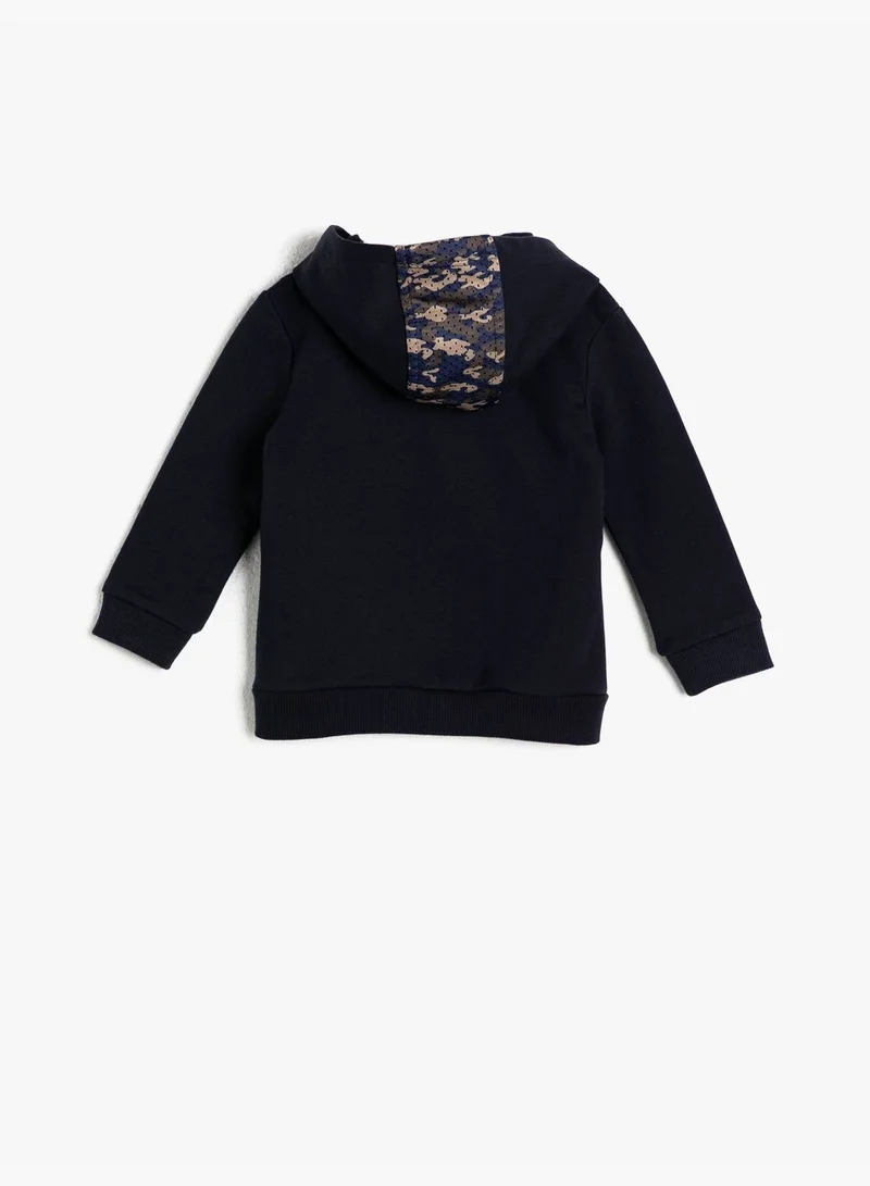Hooded, Long Sleeve, Button Detailed, Pocket Detailed Sweatshirt
